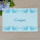 Destei's blue heart shapes in different sizes. There is also a personalizable text area for a name. The background color is light blue.