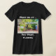 My overall review is that the T-shirt is nice, it fits true to size however the font is significantly smaller than advertised and you can't read it. The printing is unreadable and there is a strain to read it. It does not look like the advertised product. Maybe the shirt color is darker or a larger more visible font should have been used. Photos with and without flash and font is barely legible.