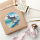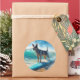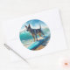 Blue Heeler Beach Surfing Painting Classic Round Sticker