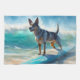 Blue Heeler Beach Surfing Painting Kitchen Towel