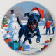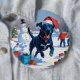 A heartwarming holiday illustration featuring a cheerful dog playing in the snow, wearing a Santa hat and surrounded by colorful gift boxes. In the background, children build a snowman beside a snow-covered Christmas tree, creating a joyful winter wonderland. Perfect for spreading holiday cheer and capturing the magic of Christmas.