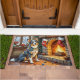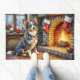 Blue Heeler Fireplace with Christmas Lights Doormat