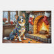 A heartwarming Christmas artwork featuring a loyal Blue Heeler sitting beside a glowing fireplace adorned with stockings and sparkling Christmas lights. This cozy holiday scene captures the Blue Heeler’s intelligent, hard-working nature and loving personality, making it perfect for dog owners and festive home decor. Bring warmth, charm, and holiday spirit to your space with this beautiful pet-inspired artwork.
