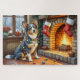 Blue Heeler Fireplace with Christmas Lights Jigsaw Puzzle