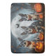 Unleash the spooky spirit with this eerie Halloween design featuring a pack of dogs under a dark, moonlit sky, surrounded by flying bats and glowing pumpkins. Perfect for those who love a touch of frightful fun with their furry friends!