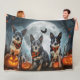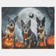 Unleash the spooky spirit with this eerie Halloween design featuring a pack of dogs under a dark, moonlit sky, surrounded by flying bats and glowing pumpkins. Perfect for those who love a touch of frightful fun with their furry friends!