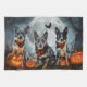 Unleash the spooky spirit with this eerie Halloween design featuring a pack of dogs under a dark, moonlit sky, surrounded by flying bats and glowing pumpkins. Perfect for those who love a touch of frightful fun with their furry friends!
