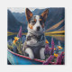 Blue Heeler on a Paddle: A Scenic Adventure Magnet