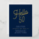 Blue Hello 50 Gold Script 50th Birthday Party Foil Invitation