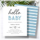 Customizable simple and modern baby shower, affordable paper invitation, featuring a blue and white tones. With the words " hello baby " and stripe blue and white reverse.
