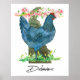 A poster decorated with a Blue Hen Chicken with branches of blooming peach blossoms with the state shape illustrated with ink and watercolor. Inspired by the state bird and state flower of Delaware. Great college room decor for The First State!
