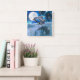 Blue Heron, Full Moon & Waterfall Fantasy Scene Square Wall Clock