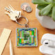 Large square premium metal keychain with an image of a stained glass artwork with a heron motif. See matching square double-sided acrylic keychain, square button, square charm, square necklace and wrist watch. See the entire This & That Keychain collection in the ACCESSORIES section.