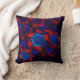 Blue hexagon mixed with overlapping red curves throw pillow