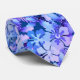 Blue and purple, unisex, tropical holiday tie with hibiscus and holly design. Shades of blue with lavender colors make up this bold pattern to wear at Christmas or any time of the year.