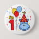 Blue Hippo Face First Birthday Pinback Button