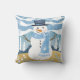 Blue Holiday Snowman Christmas Winter Throw Pillow