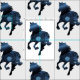 Blue horse art on fabric.Beautiful design of a running horse silhouette.