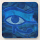 Coasters with the Eye of Horus textured blue abstract design. This design features the Horus Eye in blue tones on faded Horus Eyes in the background.