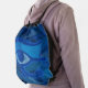 Drawstring backpack with the Eye of Horus textured blue abstract design. This design features the Horus Eye in blue tones on faded Horus Eyes in the background.