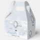 Celebrate the upcoming arrival of your little one with this enchanting Blue Hot Air Balloon Baby Shower Favor Box. Featuring a charming blue hot air balloon floating among fluffy clouds against a soft light blue background, this design adds a dreamy and uplifting touch to your celebration. Perfect for holding small treats or gifts, these favor boxes are ideal for a boy's baby shower and make a delightful token of appreciation for your guests! BBS317