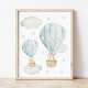 Blue Hot Air Balloon, Cute Animals, Boy Nursery Wall Art Sets