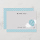 Personalized thank you card with blue hot air balloon design and pink polkadot background.