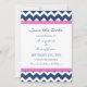 Wedding save the date announcement card with elegant and contemporary dark navy blue, fuchsia bright pink and white modern zigzags chevron pattern. Customizable with your wedding details, available in a wide range of matching wedding products. Contact us to request a color change or a custom product.