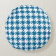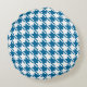Blue Houndstooth Repeating Pattern Round Pillow
