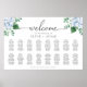 This seating chart poster features a soft watercolor blue hydrangea floral design and 16 tables layout. The script text heading is an image that cannot be edited. The heading image can be resized to fit any poster size. All of the other text is fully editable. For more advanced customization of this design, simply select the "Customize It" button above.