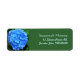 Blue Hydrangeas address labels. Personalize with name and address in light blue text on a green background decorated with a large, light blue hydrangea photograph.