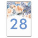 Blue Hydrangea and Peach Roses Wedding Table Number