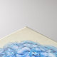 pretty blue hydrangea blossoms and Queen Anne's Lace bouquet in cream colored vase with vintage texture overlay