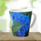 Chill out with a coffee latte in this ceramic mug that features a wrap-around photo image of blue Mophead Hydrangea blooms. A lovely, floral design! Select your latte mug size.