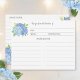 These bridal shower recipe cards feature a watercolor floral design with blue hydrangea flowers, leaves and foliage. Matching bridal shower recipe binder and other products are also available.