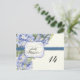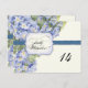 This elegant and sophisticated Table number postcard blends classic and contemporary. A postcard can be ordered one at a time so you can change the # for each table. Remember to change front and rear. These are an incredibly inexpensive but elegant touch for your reception. This art work is one of Audrey Jeanne Robert's Best Selling and Best Loved collections. Text on the front is from a hand calligraphy font and reads, "RSVP." It is highlighted by being placed in a contemporary bracket shaped frame overlaid on a blue ribbon. The background is make up of hand watercolored blue hydrangea blossoms that have been aged and slightly distress. The reverse side has the same background, a "torn velum" frame digitally overlaid over the design and your wedding text. You might also be interested in: COORDINATING WEDDING ALBUM/BINDER