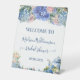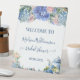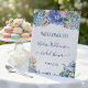 This elegant blue hydrangea bridal shower tea party design is perfect for a spring or summer event. The classic floral design features soft powder blue watercolor hydrangeas accented with neutral blush pink flowers and green leaves. This sign is part of a charming stationery collection, with templates ready to customize. Complete your event with matching invitations, stickers, and other party supplies to create a cohesive and beautiful aesthetic. Ideal for celebrating a bride-to-be, this invitation sets the tone for a delightful and sophisticated gathering, promising an unforgettable occasion filled with charm and elegance.