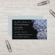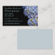 Blue hydrangeas business cards. Light blue template text on black with hydrangea photography along the edge. Reverse is light blue. Suitable card for any business woman.