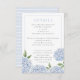 This beautiful blue hydrangea floral wedding enclosure card features watercolor blue flowers and your custom text. The reverse is a thin watercolor stripe, which can be deleted for a solid color back. Use the template to fill in your information. The "Customize further" feature can be used to change the font (size, style, color), and add more lines of text, change the layout and add text to the back.