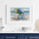 Bring soft coastal florals to your space with this Blue Hydrangea Beach Art Print from the Nautical Blue collection by TinkPrints. A glass vase of blue hydrangeas, sea glass tones, and sandy beach details create a calm, airy focal point for beach house living rooms, bedrooms, and coastal cottage decor. Designed to coordinate with the Nautical Blue palette, this artwork pairs easily with matching collection pieces like wall art, coasters, mugs, kitchen towels, labels, and note cards for a cohesive blue and white coastal look.