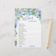 Blue Hydrangea Floral Bridal Shower Game