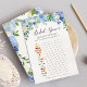 Blue Hydrangea Floral Bridal Shower Game Card