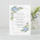Blue Hydrangea Floral Gold Geometric Frame Invitation