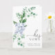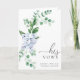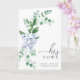The Ferras wedding vow card features a timeless blue hydrangea watercolor floral design and modern fonts. The script heading is an image that cannot be edited. All of the other text is fully editable. For more advanced customization of this design, simply select the "Customize It" button above.