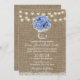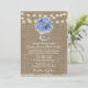 Blue Hydrangea Floral Jar Rustic Burlap Wedding Invitation