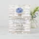 Blue Hydrangea Floral Jar Rustic Wood Wedding Invitation