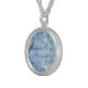 The Blue Hydrangea Floral Prom Pendant Necklace makes a pretty prom gift to wear to the formal dance. Customize it with the personal name of the girlfriend and boyfriend or prom date and the year. This custom prom necklace features a blue hydrangea flower blossom inside a sterling silver plated round pendant. Perfect for the girl who is wearing a blue dress or blue flower corsage to the dance on prom night.