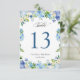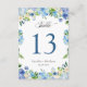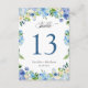 Blue Hydrangea Floral Wedding Table Number Card