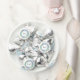 Add these beautiful sweet treats to your wedding. They feature blue and purple hydrangeas and roses in a floral wreath. These hydrangea wedding Kisses are perfect for spring and winter weddings. Matching items are available.