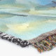 A quality printed throw has its advantages. This is a much finer weave throw than its loopier cousins, and though lighter, it is worth the investment for custom room accessorizing. The back is much prettier than the typical brown, and the fringe on the long sides very vivid, the selvage nicely done. Before photographing, I washed the throw in cold water, delicate, with a thicker woven throw the same size. On tumble dry low, this throw was dry in half the time as the other. This is a very practical quality if you use throws for furniture covers or to wrap up in frequently. The sleekness of the fabric makes it a great layer for accenting or protecting without the feeling of sitting on too much stuff. Perfect for napping or when you feel a light chill coming on. The color printing is beautiful and on this fabric, matched the design and color of my Photoshop image. This is an advantage for blending room fabrics and colors. The fringe on the short sides prints the colors from the design image and therefore varies from the side fringe. I streaked a white fractal line through the plaid pattern to give the illusion of weaving. This printed as crisp as an illusory thread, and put some white in the short side fringe, showing another advantage of print vs loomed- for artistic purposes, line lines, detail, and color integrity can be planned and preserved. My loomed throws have color limitations and more of a needlepoint texture. Print throws reproduce an exact image. The throw felt a little stiff straight out of the package, but this went away in the first delicate wash. Of course I searched the wash water for ink or bleeding and there was none.